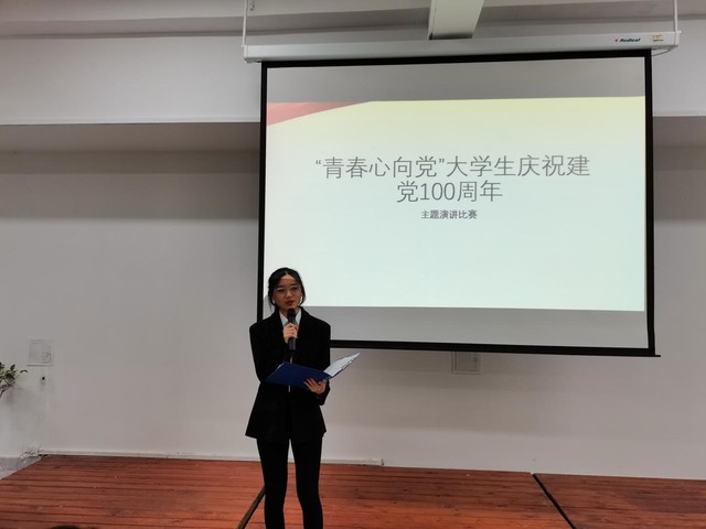 首先登台的茅馨匀同学以《峥嵘千秋伟业,恰是百年风华》为题,慷慨激昂的话语使同学们认识到青年正站在“两个一百年”奋斗目标的历史汇合点,全面建设社会主义现代化国家新征程即将开启。何佳颐同学以《风雨兼程一百年,昂首阔步向未来》为题展开演讲,号召同学们将自己的目标理想与党和国家的前途命运维系在一起,更好地实现人生价值。韩洋同学则以《青春心向党,愿为党先行》为题进行演讲,倡导青年人应做好自己的工作,尽职尽责,才能不辱时代所赋予的使命。选手们的精彩演讲深深打动了同学们,充分展现着青年学生的青春理想、责任和作为,体现了对党赤诚的热爱,赢得了热烈的掌声。比赛评选出一二三等奖。