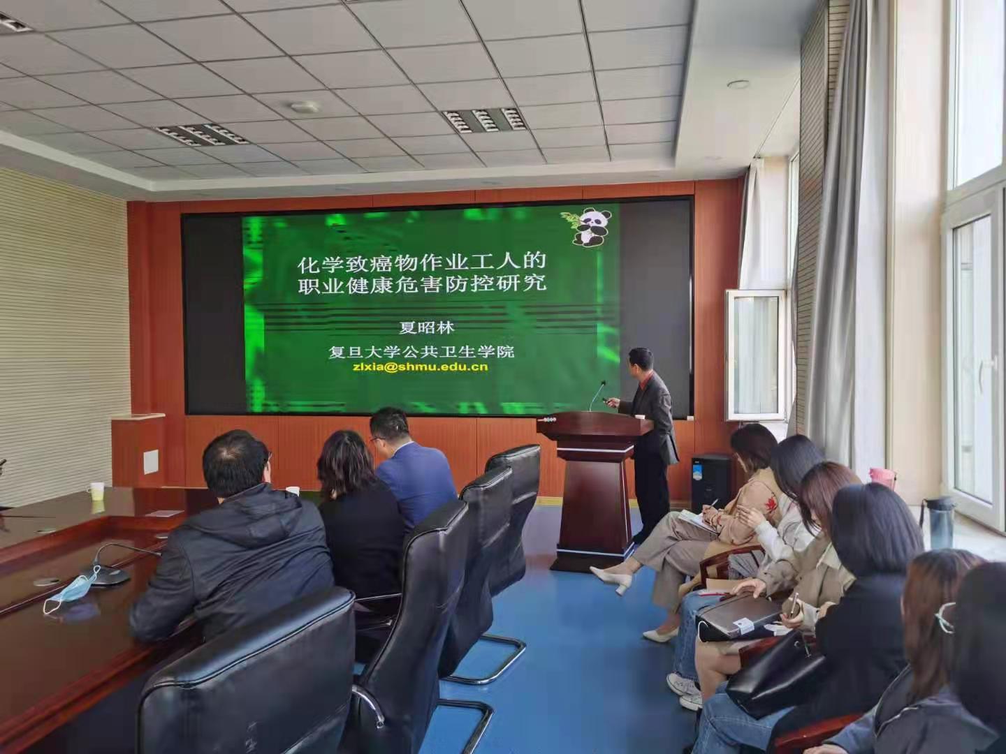 夏昭林教授感谢学校的热情接待,对羞羞漫画 近年来的高质量发展和努力创建高水平医科大学、公共卫生与预防医学评选为山东省高水平学科、人才引进等方面取得的成绩给予充分肯定和高度评价。随后,夏教授做了题为《化学致癌物作业工人的职业健康危害防控研究》的报告,他结合自己在劳动卫生与卫生毒理领域深耕20年的工作经验和科研实践,从职业卫生现场设计的规范性、研究对象选择的严谨性、研究指标选取的科学性以及研究工作的深入性等各个方面为羞羞漫画 师生提供了一场学术盛宴。