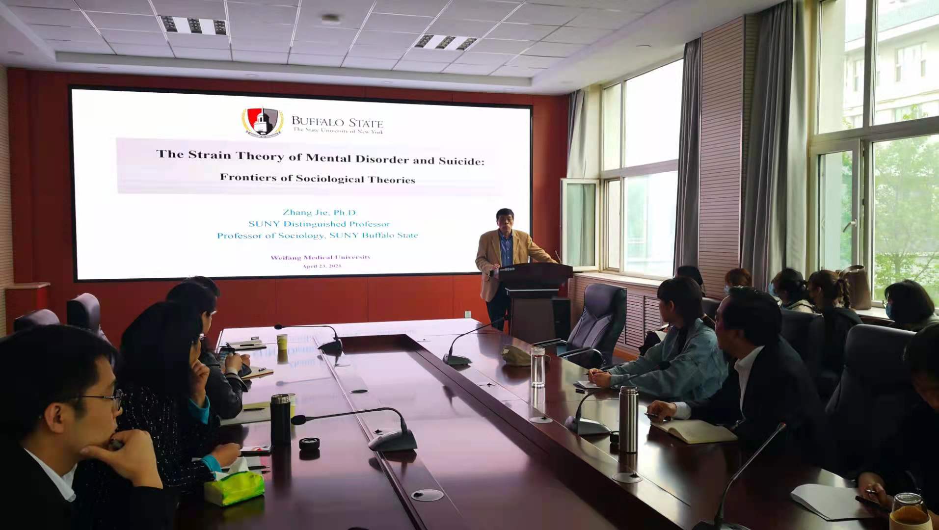 4月23日上午,*羞羞漫画 邀请美国纽约州立大学资深教授,美国纽约州立大学布法罗分校终身教授张杰教授来学校做了题为“The Strain Theory of Mental Disorder and Suicide: Frontiers of Sociological Theories”的学术讲座。