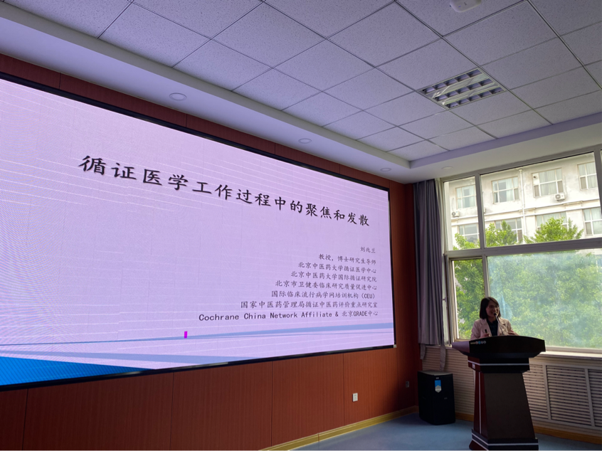 刘建平教授和刘兆兰教授在科技楼B座205会议室分别做了题为《循证医学的方法及其应用》《循证医学工作过程中的聚焦和发散》的讲座。刘建平教授从循证医学的发展历史及循证医学与临床医学的关系方面做了系统全面的介绍。刘兆兰教授从选题、制作研究方案、文献检索、文献筛选等系统评价的制作步骤方面进行了详细讲解。随后,两位教授和现场师生进行了积极互动和学术交流。