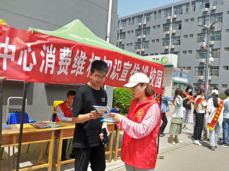 志愿者协助工作人员发放宣传手册并现场解读,向广大师生普及关于保险、贷款、老年保健品等金融和食品安全等各类消费维权知识。活动现场设立志愿服务岗,工作人员提供消费维权咨询服务,并当场为一名学生处理一起消费侵权事件,维护了学生的合法权益。