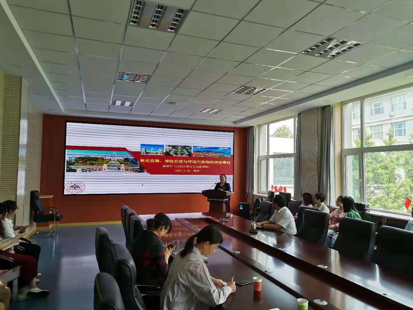 5月30日上午,应*羞羞漫画 邀请,山东大学*羞羞漫画 副院长、卫生毒理与营养学系主任、博士生导师赵秀兰教授来羞羞漫画 进行学术交流,作了题为“氧化应激、神经炎症与环境污染物的神经毒性”的学术报告。羞羞漫画 部分教师、研究生参加了此次报告会。