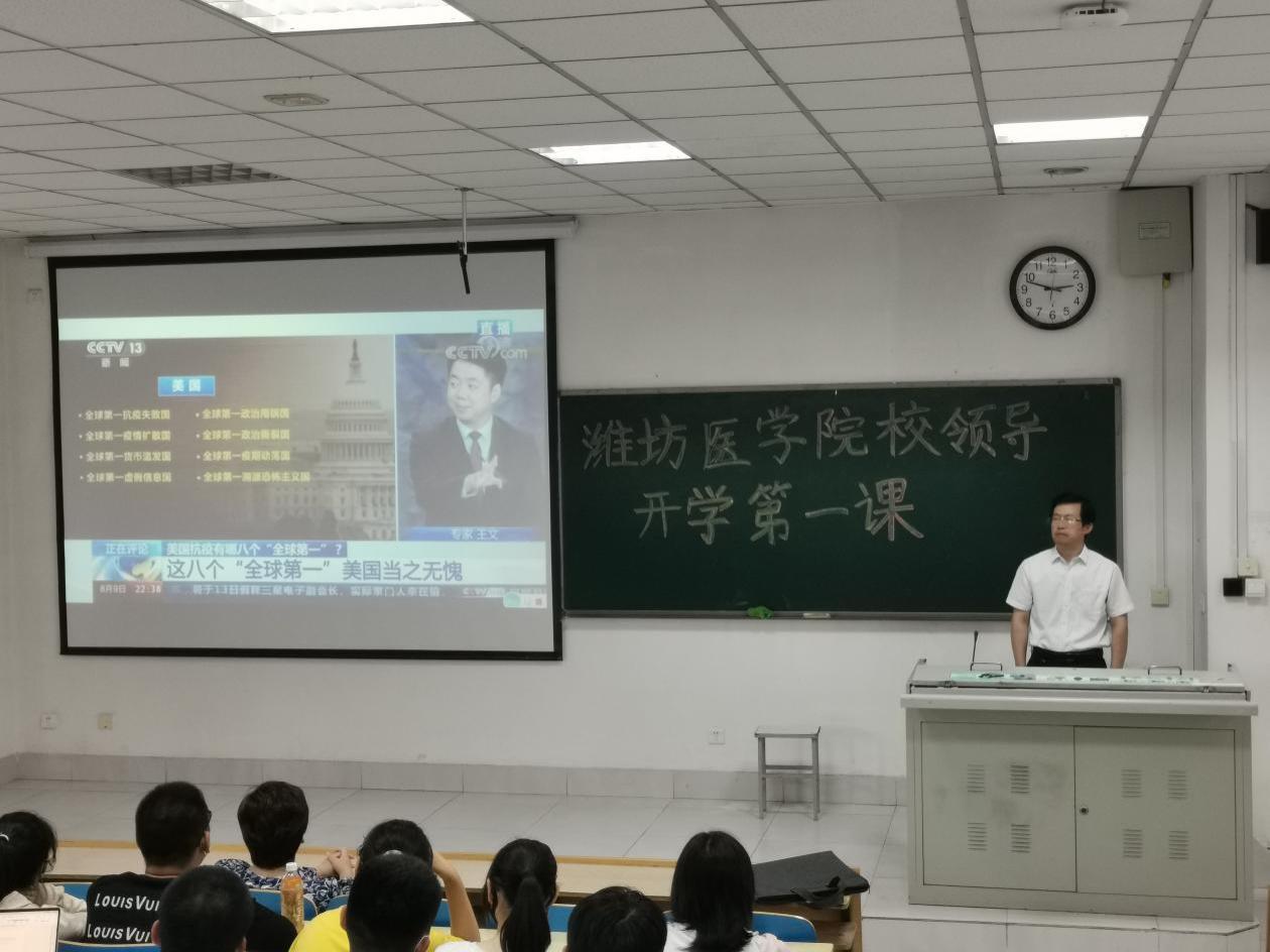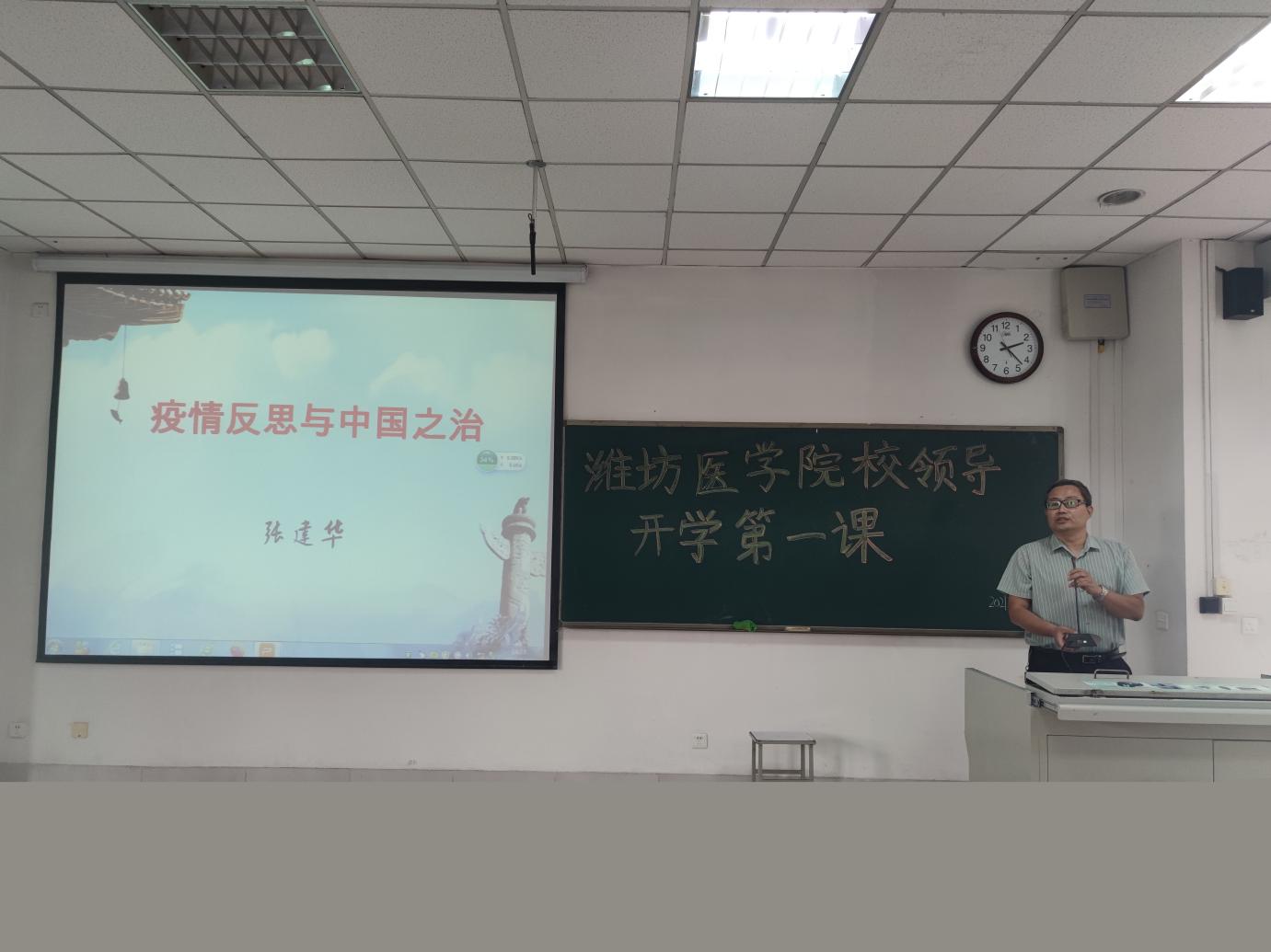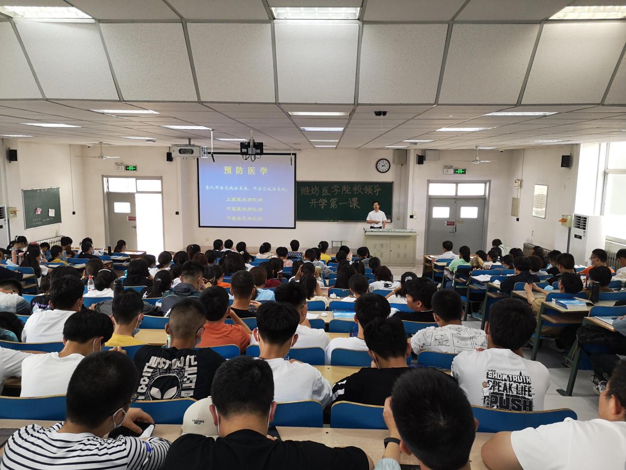 9月23日下午,潍坊医学院副院长、*羞羞漫画 院长张建华教授在A302教室,以“疫情反思与中国之治”为主题,为预防医学专业2021级全体新生做了一场别开生面的政治思想和专业教育主题讲座,讲座由*羞羞漫画 党委书记王培承主持,预防医学部分专业教师、全体辅导员参加讲座。