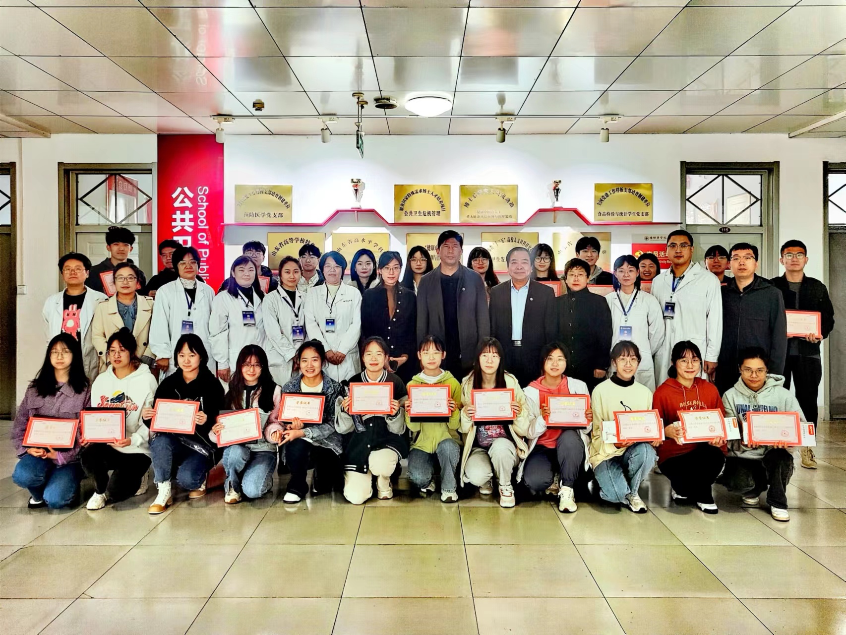 大赛采取四人一队,分工协作的参赛方式进行。初赛内容为数据分析处理,通过应用统计软件(SPSS、SAS),对数据进行整理和统计分析,提交分析结果,并对结果进行合理解释的方式对公共卫生基本理论与方法进行考核。决赛通关对“个体防护”、“临床基本技能”、“样品采集”等多个环节实操比拼,在指定地点和时间内完成操作并由评委现场打分。大赛最终评选一等奖4人、二等奖8人、三等奖12人。*羞羞漫画 党委书记王培承、院长郑文贵、党委副书记许婷婷、副院长王春平出席大赛现场并为获奖同学颁发荣誉证书。
