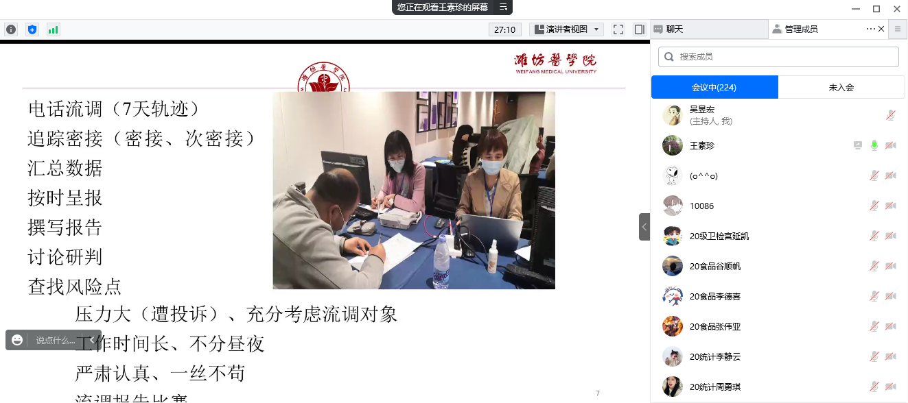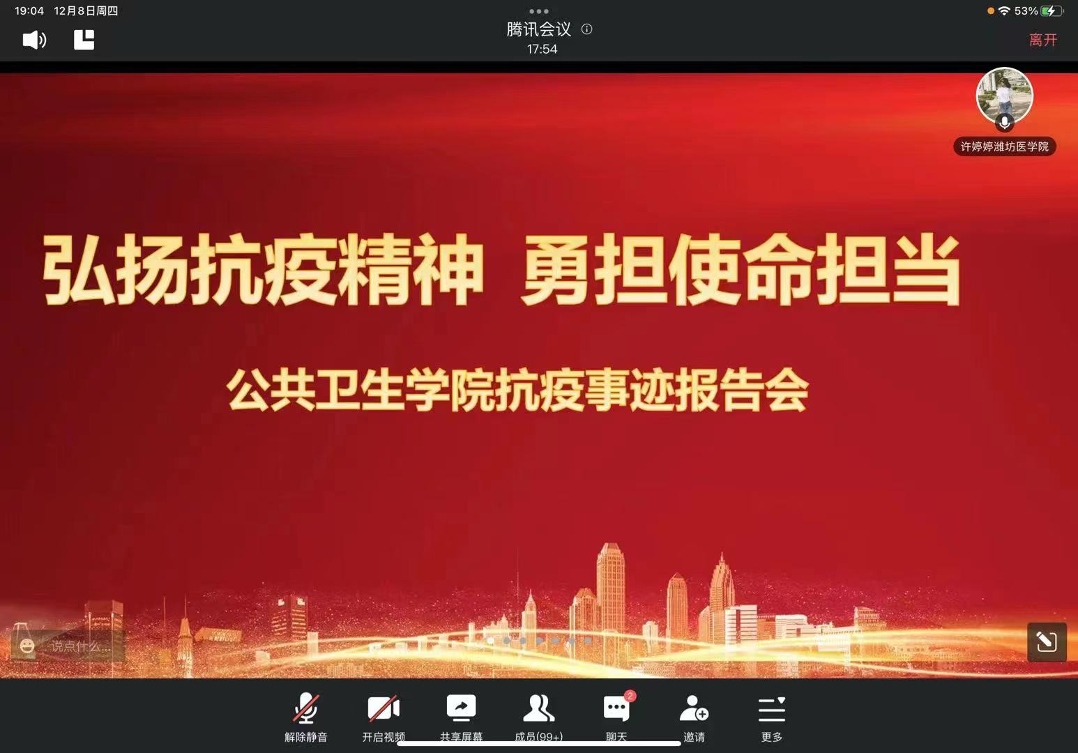 为弘扬伟大抗疫精神,传承“国家召唤,使命必达”的坚定信念,12月8日,*羞羞漫画 通过腾讯会议举办抗疫事迹报告会,会议由学院党委副书记许婷婷主持,学院党委班子成员、全体辅导员、班主任及师生代表两百余人线上参会。