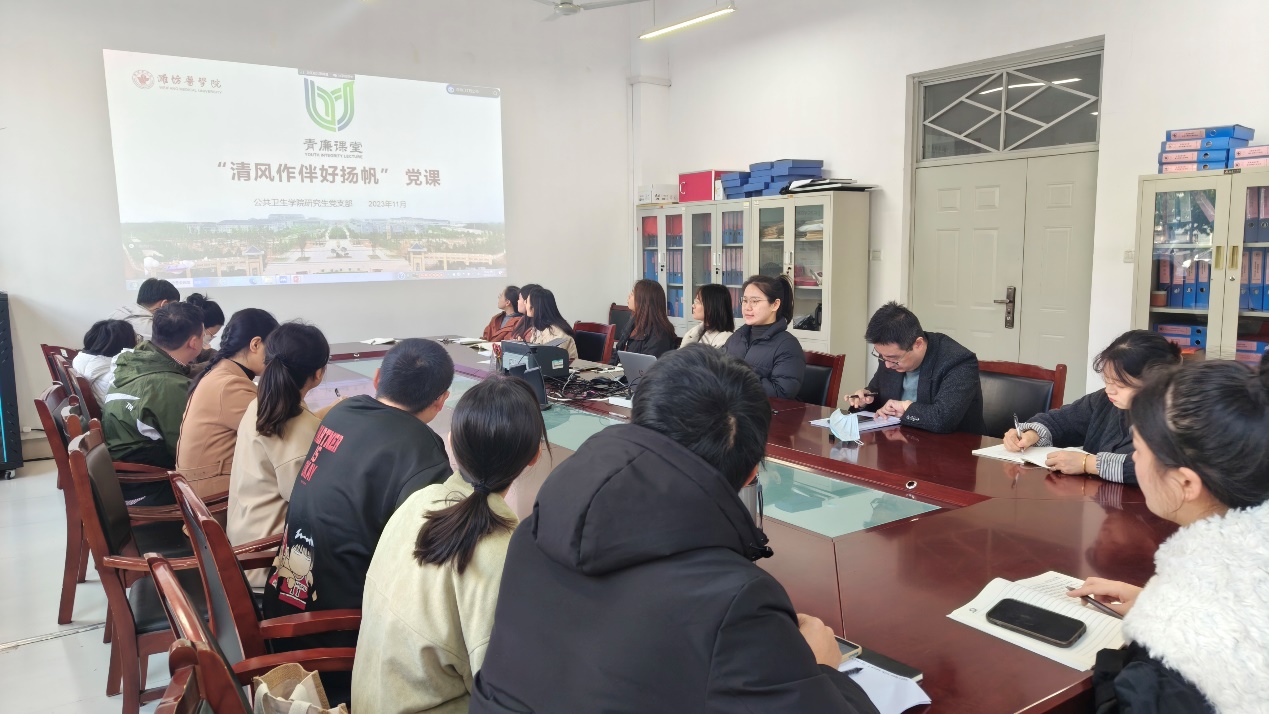 118日,*羞羞漫画 研究生党支部在科技楼B123会议室开展“青廉课堂”主题活动,支部所有党员参加。
