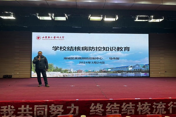 在第29个“世界防治结核病日”来临之际,为加强结核病防治的科普宣传,营造全校园参与结核病防治的良好氛围,3月24日晚,*羞羞漫画 在图书馆演播厅举行第四届“爱在潍医,防治结合”结核病防治宣传活动。潍城区疾控中心结防科科长马传智、主管护师卞文霞,后勤管理处校医院院长谢瑞柱、副院长石文静担任本次活动的嘉宾评委,辅导员及学生200余人参加活动。