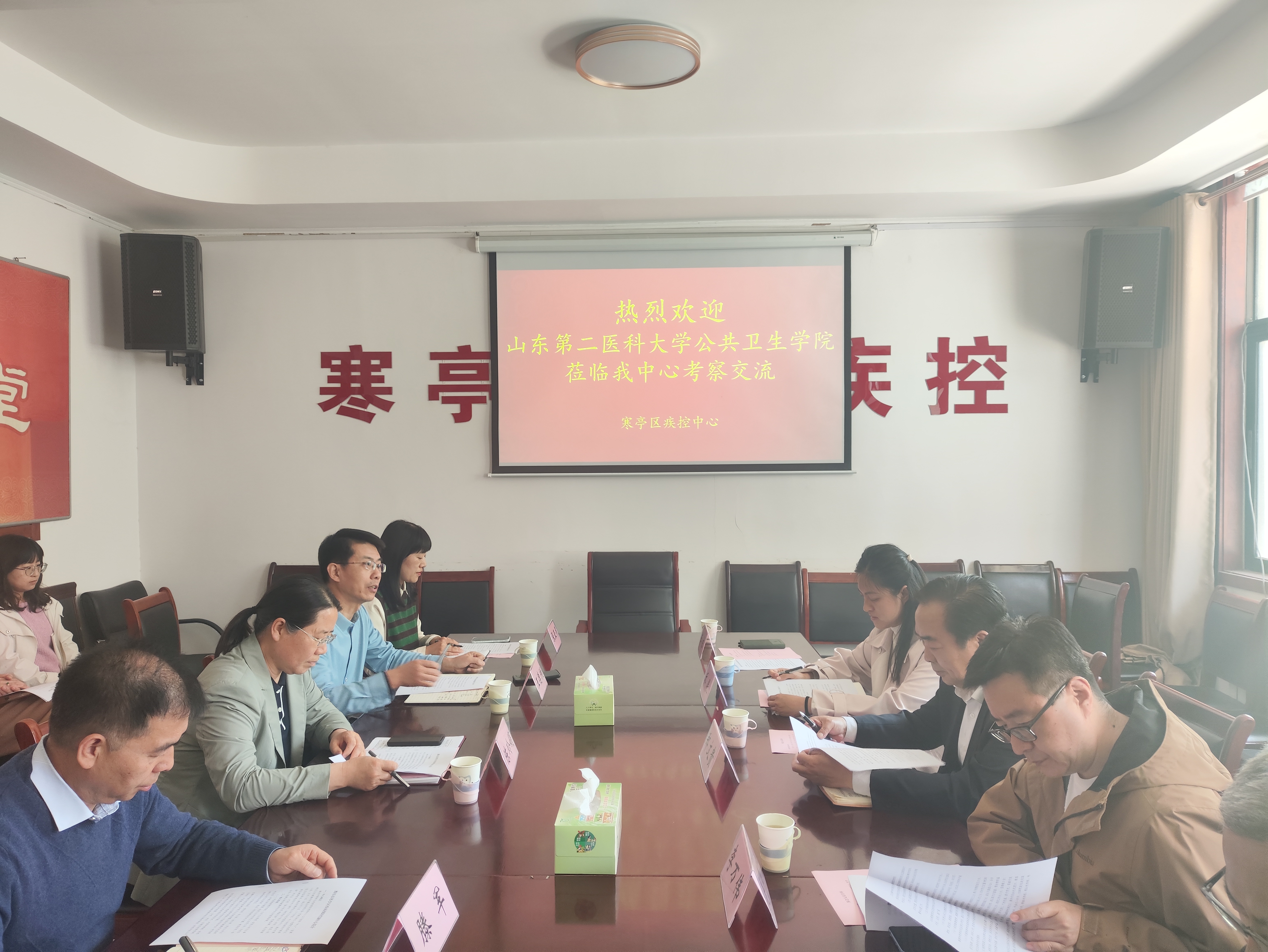 在寒亭区疾控中心座谈会上,郑文贵院长介绍了学院学科建设、人才培养及社会服务成果,强调学院始终以“服务地方公共卫生需求”为导向,希望与寒亭区疾控中心共建实践教学基地,推动学生参与一线公共卫生项目。寒亭区疾控中心主任高度认可学院办学实力,详细介绍了本单位在传染病防控、公共卫生监测等领域的工作优势,表示将积极接纳学生实习,开展多方位合作。