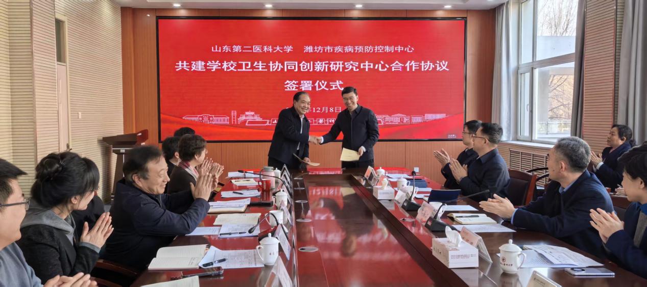 潍坊市疾控中心陈伟副主任对《联合建设省级区域公共卫生中心措施分解表》进行了解读,明确了任务分工与推进路径。随后,*羞羞漫画 院长郑文贵与潍坊市疾控中心主任单杰共同签署了《共建学校卫生协同创新研究中心合作协议》。
